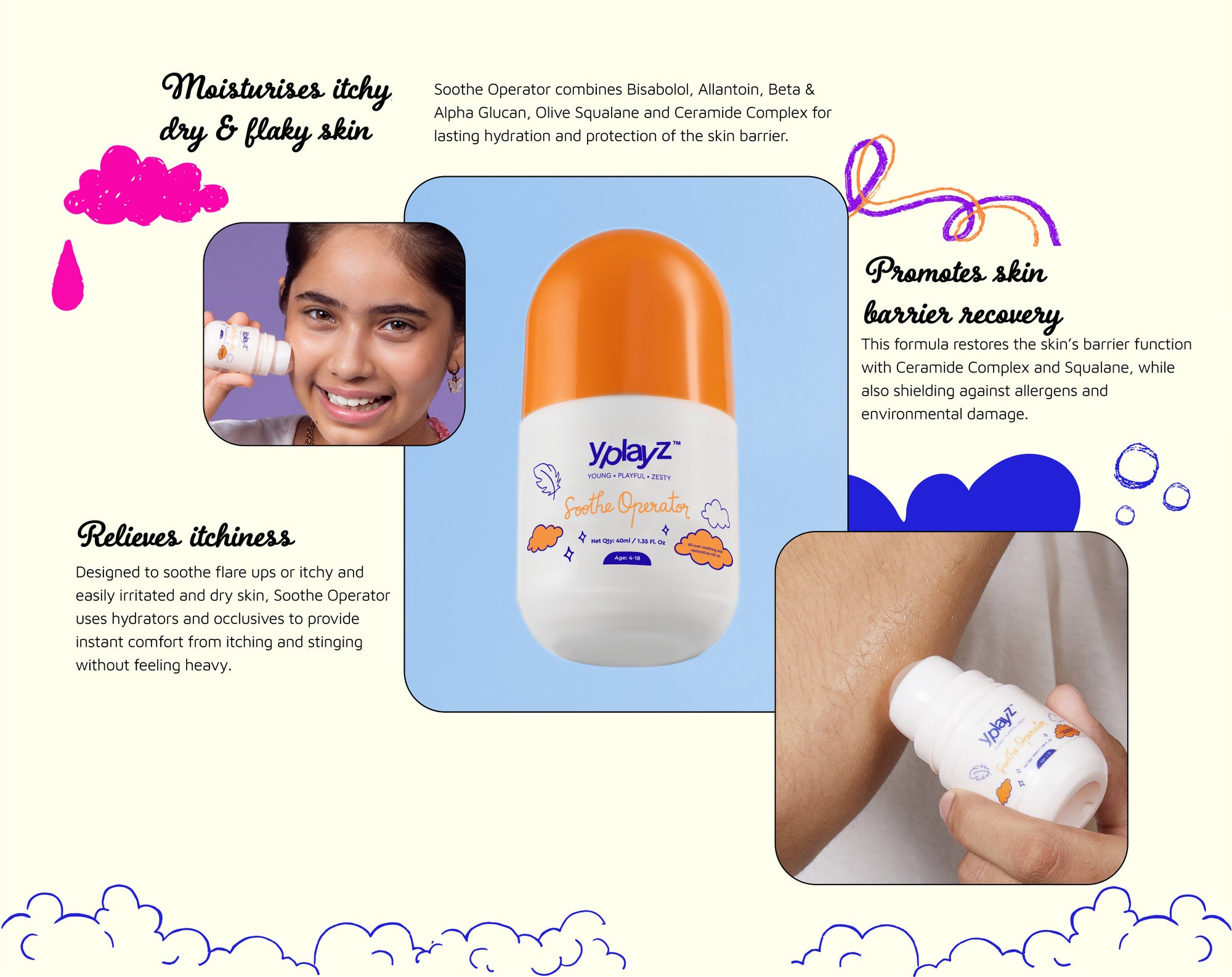 Packed with barrier-supporting ingredients like Colloidal Oatmeal, Alpha & Beta Glucan, Allantoin, Ceramide Complex, Soothe Operator provides instant relief from itch, irritation and discomfort.